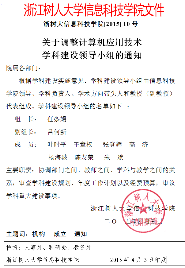 关于调整计算机应用技术学科建设领导小组的通知