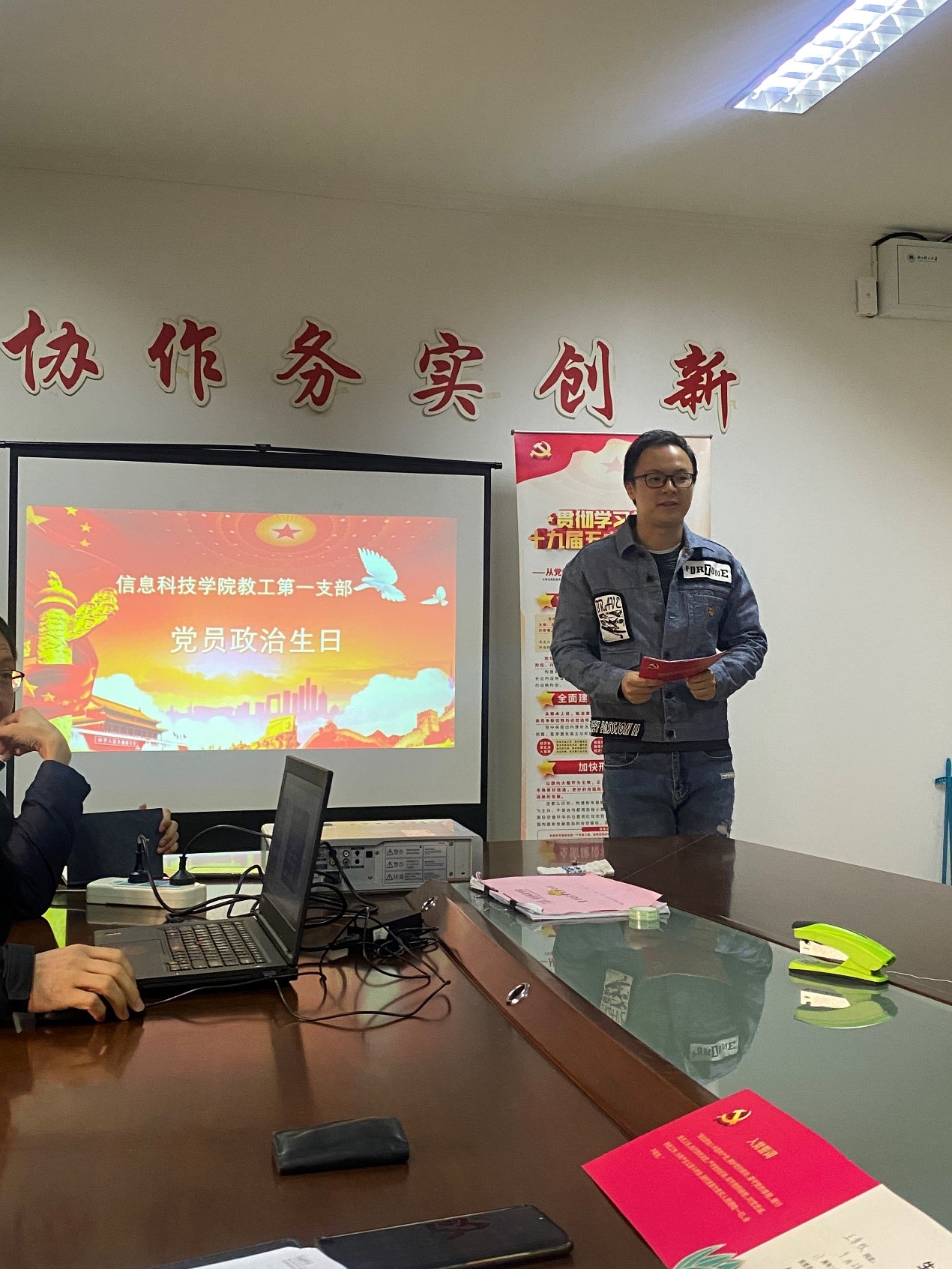 首先,陈友荣书记介绍样板支部验收的相关工作情况,目前已经成立验收专项小组,党员之家正在建设中,育人号也在调整发布,各位老师都在努力配合支撑材料的搜集整理,12月将正式验收样板支部。