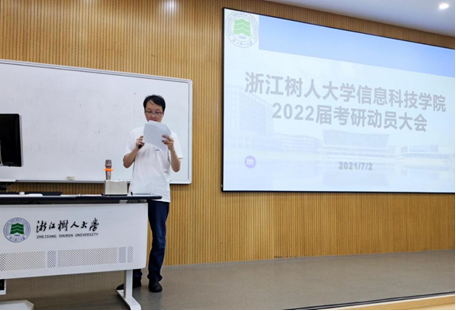 (3) 支部所属三个专业每届有7个班,2022届有考研意向的学生共有98名,为了进一步鼓励学生考研,支部专门组成教工考研辅导团队,建立教工党支部助力学生考研的对接名单,以教工自身专业特长为单位,对考研学生进行分组辅导,并进行了有组织有秩序的复习备考。下图为陈友荣老师宣读教工党支部助力学生考研的对接名单,希望同学们能认真对待考研,在学业生活上面遇到问题可及时求助于教工党支部的老师们。