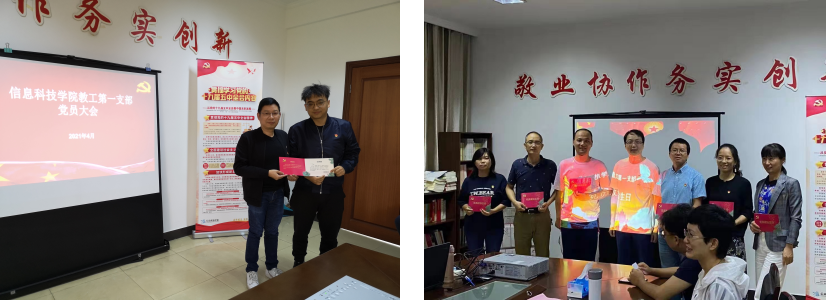 (2) 在支部活动中,推选教学相关教学、科研经验、竞赛指导经验丰富的教师作为月度先进典型,分享教学与科研经验,指导其他教工党员学习成长。