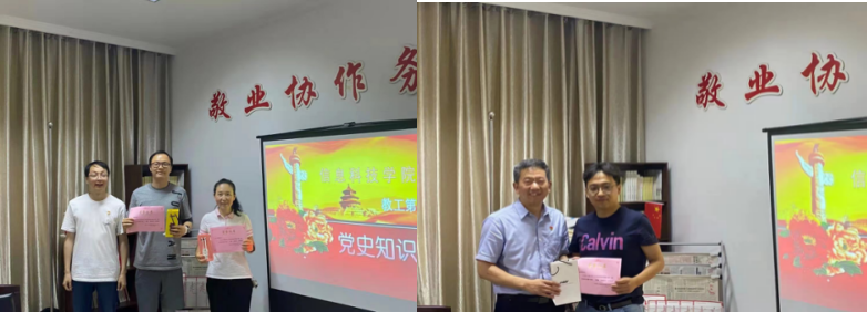 3 支部为党史知识竞赛获奖教工党员颁发奖品