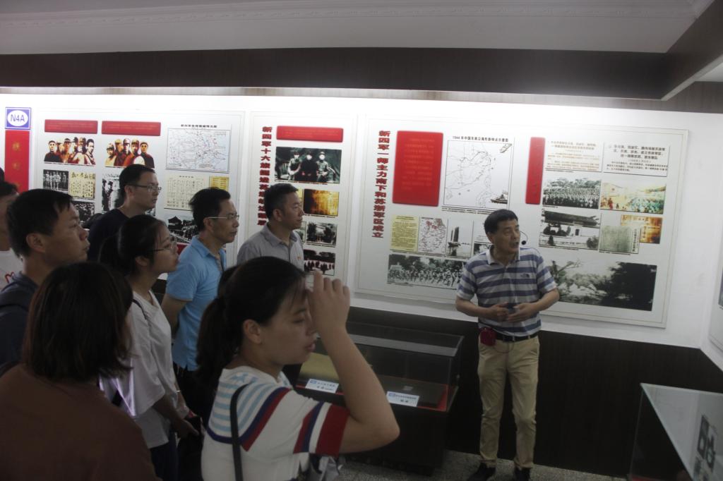 孝丰革命烈士陵园是本次党员主题活动的第一站。大家怀着对革命烈士无比敬畏的心情,瞻仰了烈士纪念碑及粟裕将军的雕像,并参观了新四军天目山反顽战役纪念馆。通过馆内的图文资料和解说员的讲解,天目山三次反顽战役生动、形象地展示在党员面前。大家仿佛回到了当时的烽火岁月,耳边仿佛听到了革命先烈们英勇杀敌时的阵阵呐喊声,又仿佛见到了我军在粟裕大将的指挥下取得一个又一个胜利时欢呼时的场景。天目山三次反顽战役开辟了浙西抗日根据地,巩固发展了苏南、浙东抗日根据地,“七七事变”81周年的这一天寻访这段红色之旅行更是警醒我们铭记历史,铭记那段峥嵘岁月。