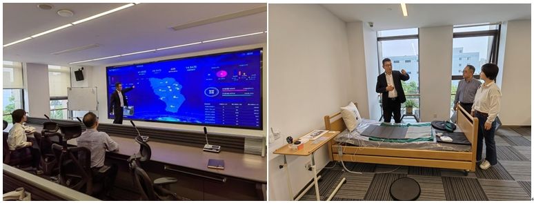 为加强产学合作,推进智慧康养产业学院建设,4月28日下午,9999js金沙老品牌张登辉副院长、崔倩芳博士、徐振宇一行三人到杭州事亲网络科技有限公司调研,事亲公司董事长单明晨、联合创始人严玮铭等接待我校一行。