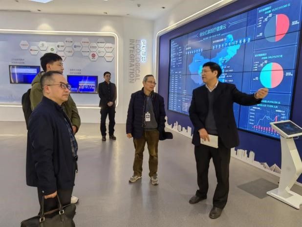 调研中,金建勋和李峰带领参观了创业慧康产品展示中心,介绍了创业慧康公司的发展历程,展示了创业慧康在智慧医疗、智慧卫生、智慧医保、智慧护理病房、智慧养老等各种智慧健康场景的技术开发成果和应用。王岩介绍了亿家医养云公司的发展背景和发展状况,重点介绍了亿家医养云基于机构、社区、居家三大生活场景,构建的多跨协同一站式养老服务平台,及其信息化系统+医康养护智慧养老服务新模式。郭雯霞介绍了公司在智慧医疗、智慧养老、智慧护理等方面开展的校企合作情况,以及企业人才培训计划等。