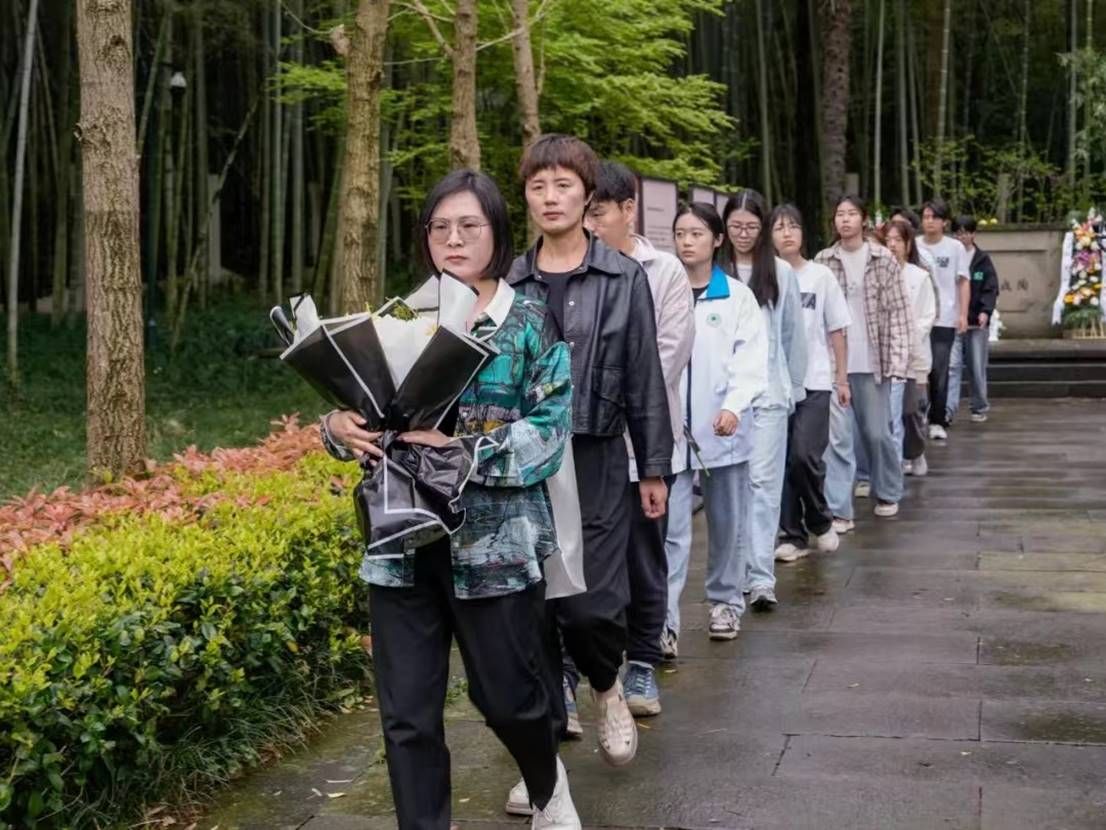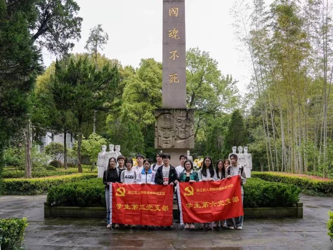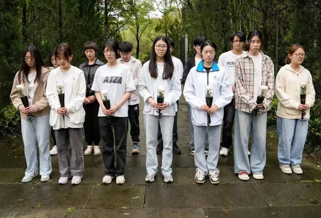瞻仰烈士陵墓 送上鲜花,在纪念馆外, 信息学子逐一瞻仰先烈,怀揣虔诚,擦拭墓碑。感受英雄们信念,将手中鲜花送给可敬之人。