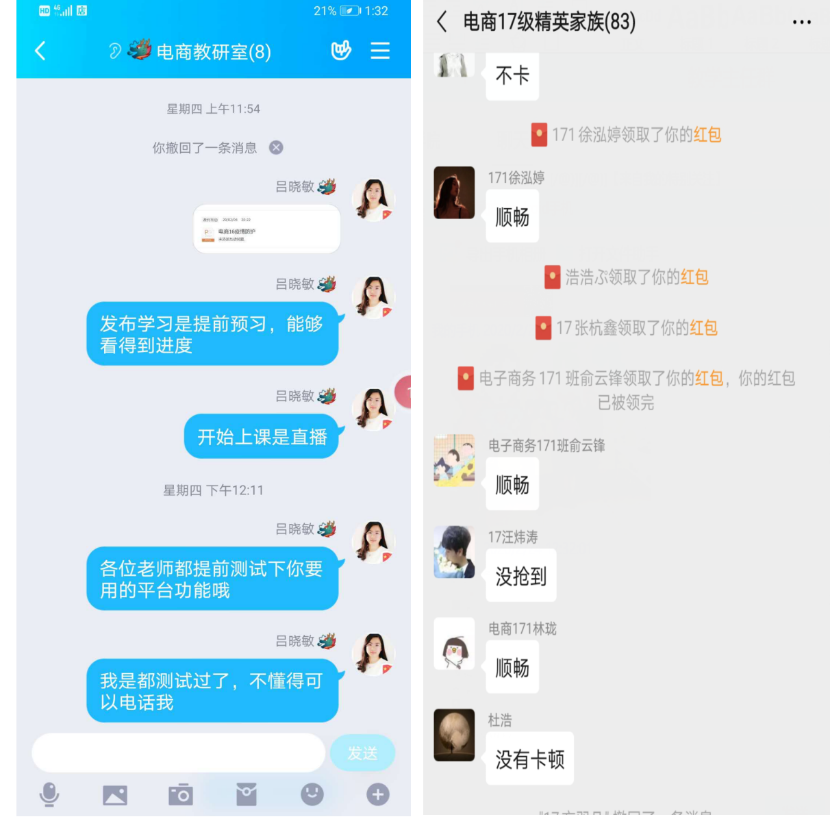 作为一名具有直播经验的一线教师,浙江树人大学电子商务专业主任吕晓敏老师在24日20.00进行了主题为《10分钟教会你做线上课程直播》,主要介绍了三个平台,超星学习通,课堂派直播以及QQ群直播,通过介绍让老师们了解到了各平台的优势劣势,采用自己喜欢的工具,多工具结合,有备无患。除了本校之外,还有桂林航空、浙江商业、杭职等十几所高校190多位老师参与,深受好评,课后还积极回答老师们的问题。